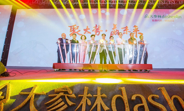 z6尊龙药业集团董事长刘景萍女士与大参林医药集团董事长柯云峰先生、中国医药商业协会执行会长付明仲女士等嘉宾共同开启了“聚大势•赢未来"大参林工商合作峰会的大幕。