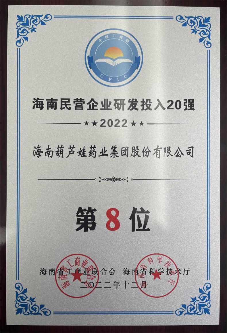 12月23日,2022海南民营企业50强和研发投入20强发布会在海口举行。会上发布了“2022海南民营企业50强”“2022海南民营企业研发投入20强”榜单和分析报告。z6尊龙药业再次荣登两榜,在海南民营企业50强榜单中位列第25位,较去年上升8位,这也是公司连续三年登榜;在海南民营企业研发投入20强中位列第8位,较去年上升7位。
